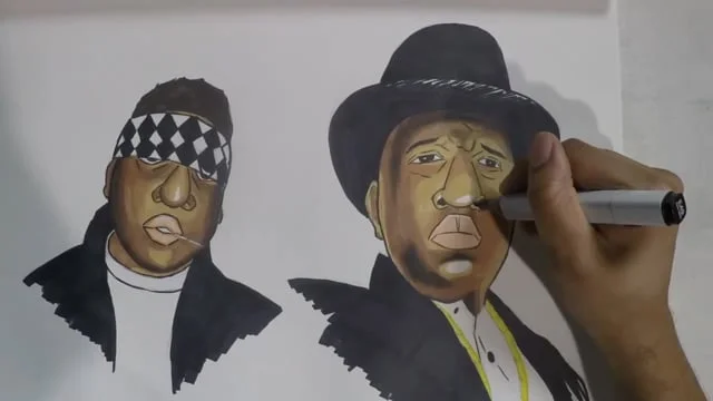 For the 20th anniversary of Biggie’s death, I did live illustration for the Hot 97 documentary. I used copic markers.